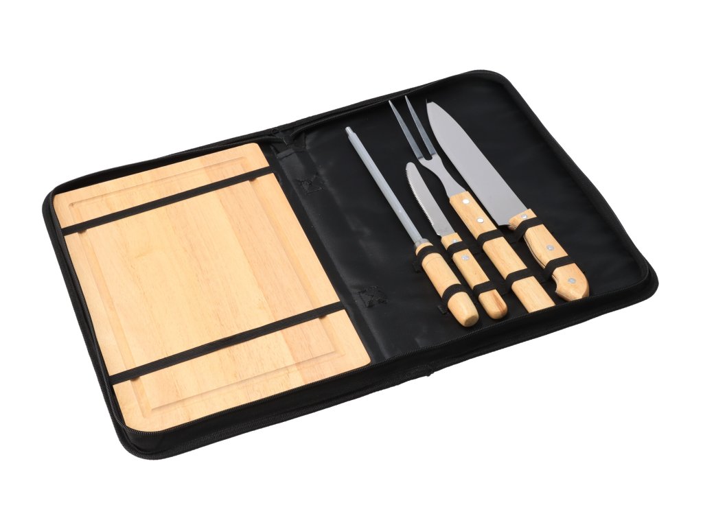 Bilo da ljeto počinje ili završava, set za roštilj uvijek dobro dođe! 4 različite posude i daska za rezanje od bambusa olakšavaju vam pripremu i prženje mesa na vrućem roštilju. Sve je upakirano u crnu torbicu s patentnim zatvaračem za lako prenošenje.