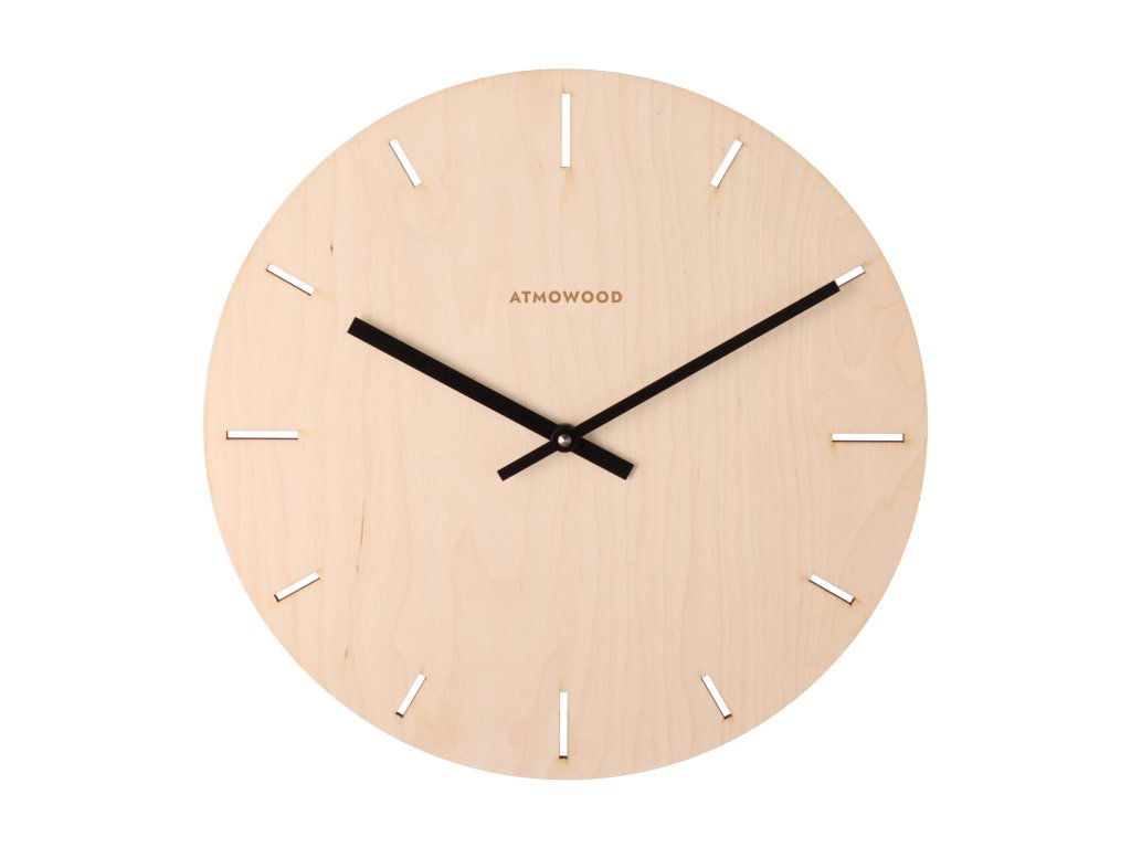 ATMOWOOD sat s indeksnim brojčanikom breza 34 cm - crne kazaljke
