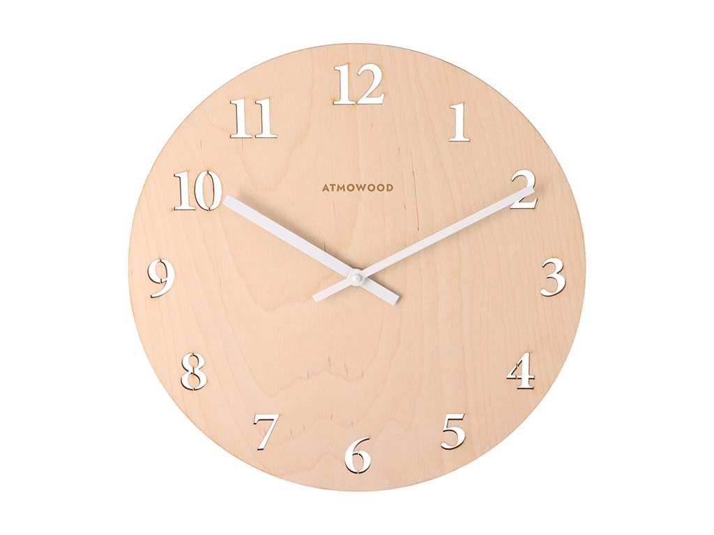 ATMOWOOD sat s numeričkim brojčanikom breza 34 cm - bijele kazaljke
