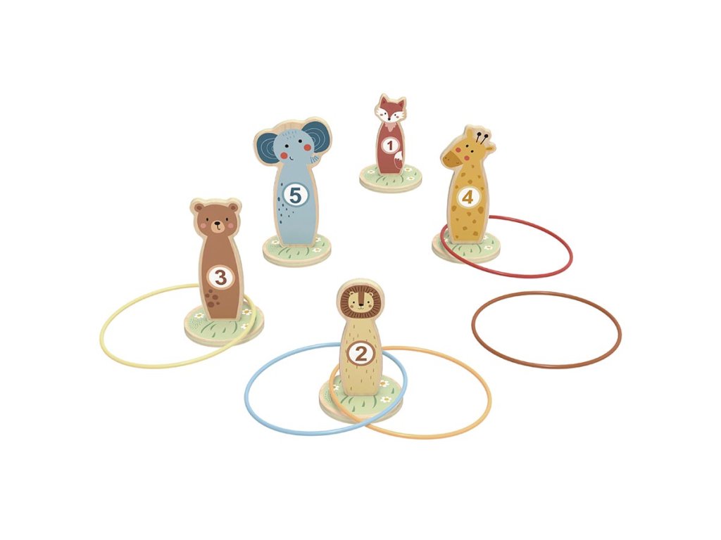 Bacanje prstenova je klasična drvena igra koja nikad ne stari, donosi djeci radost uspjeha, a istovremeno i puno vježbe i treninga vještina. Možete se igrati ne samo na otvorenom, već i kod kuće u dječjoj sobi.