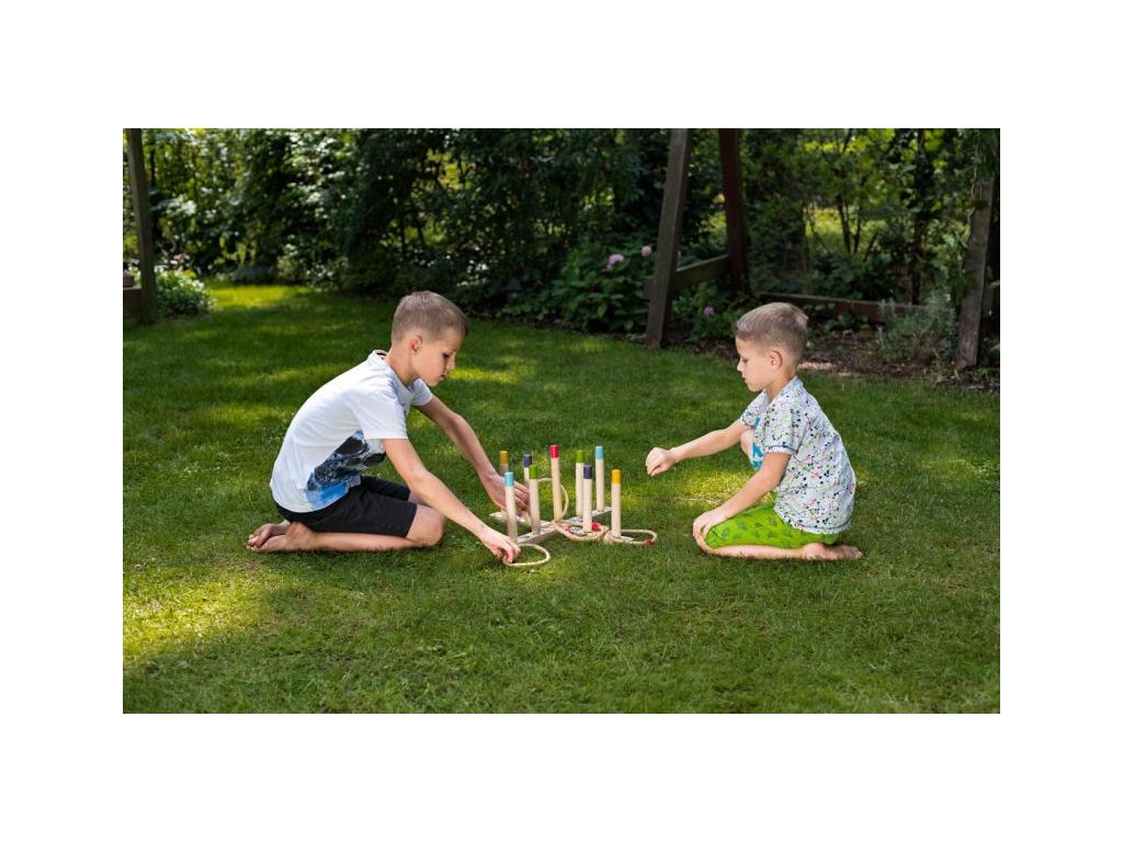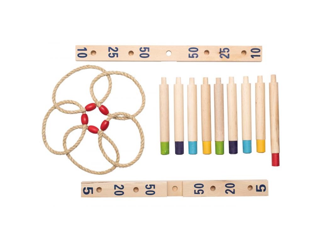Cilj je štapovima baciti 5 kolutića od pletenog užeta na drveni križ i osvojiti što više bodova.