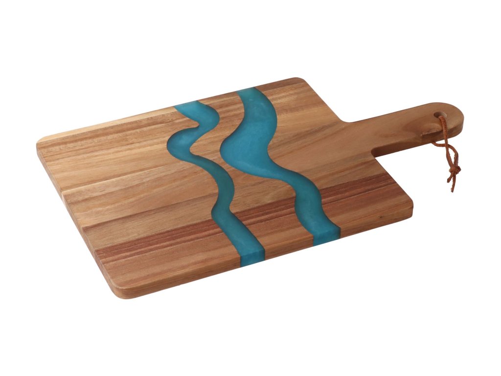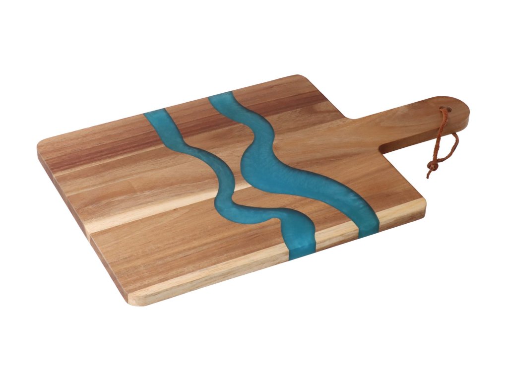 Kuhinjska ploča izrađena je od kombinacije bagremovog drva i plave epoksidne smole. Već na prvi pogled impresionira svojim originalnim izgledom, a oduševit će vas svojim karakteristikama koje ga čine korisnim pomoćnikom u svakoj kuhinji.
