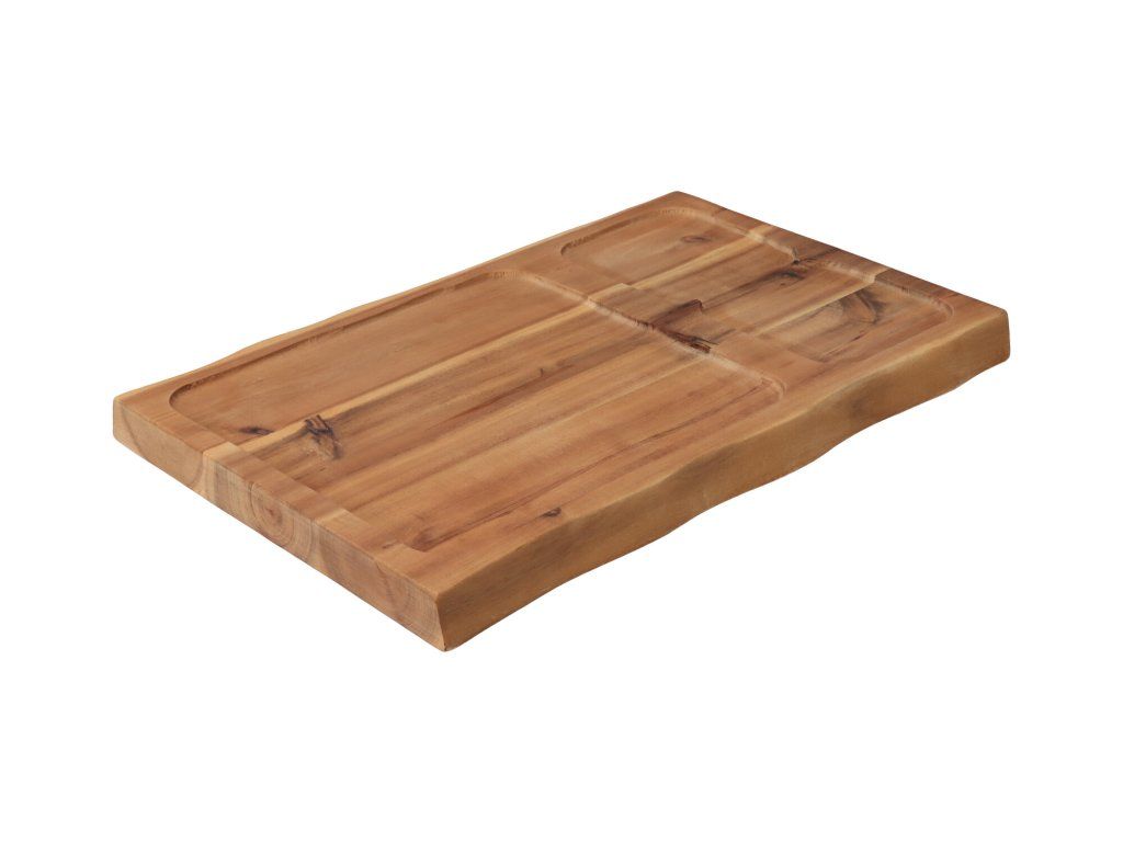 Elegantna daska za rezanje od kvalitetnog bagremovog drva pomoći će vam pri posluživanju odreska. Stabilan je, čvrst i svojim modernim dizajnom zasigurno će biti odličan dodatak svakoj kuhinji.