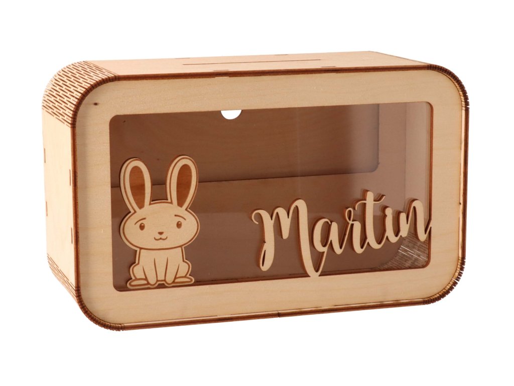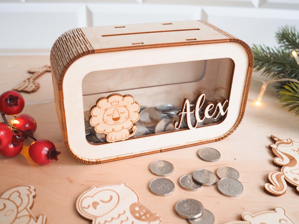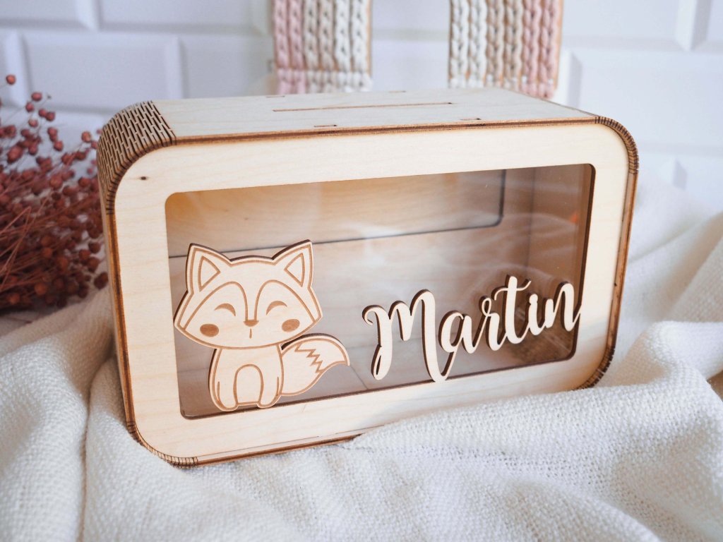 Dječja drvena kasica prasica s imenom i omiljenom životinjom idealan je poklon za svu djecu koja žele štedjeti za svoje snove. Jedinstveni izgled kase jamči da će postati omiljeni ukras u sobi.