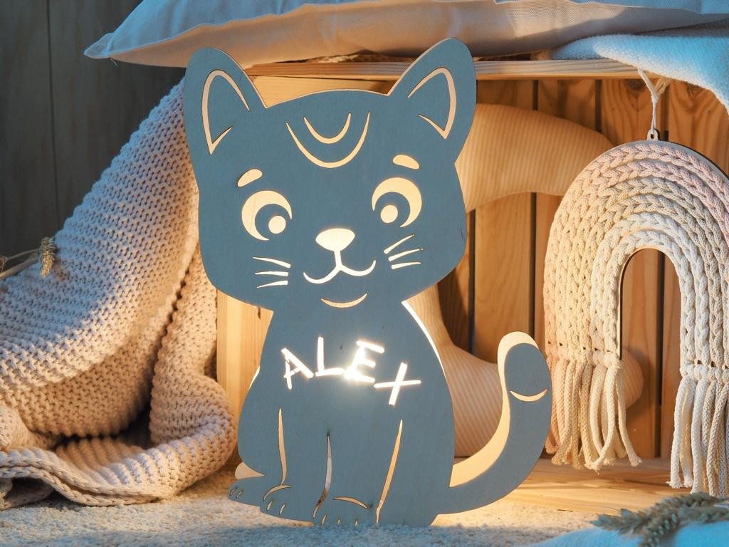 Dječja zidna svjetiljka s imenom - mačka