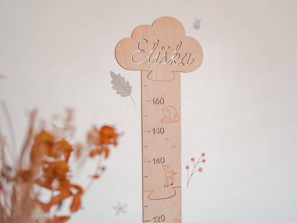 Dječji metar izrađen je od brezove šperploče debljine 3 mm. Veličina oblaka s imenom je 34 x 23,5 cm.