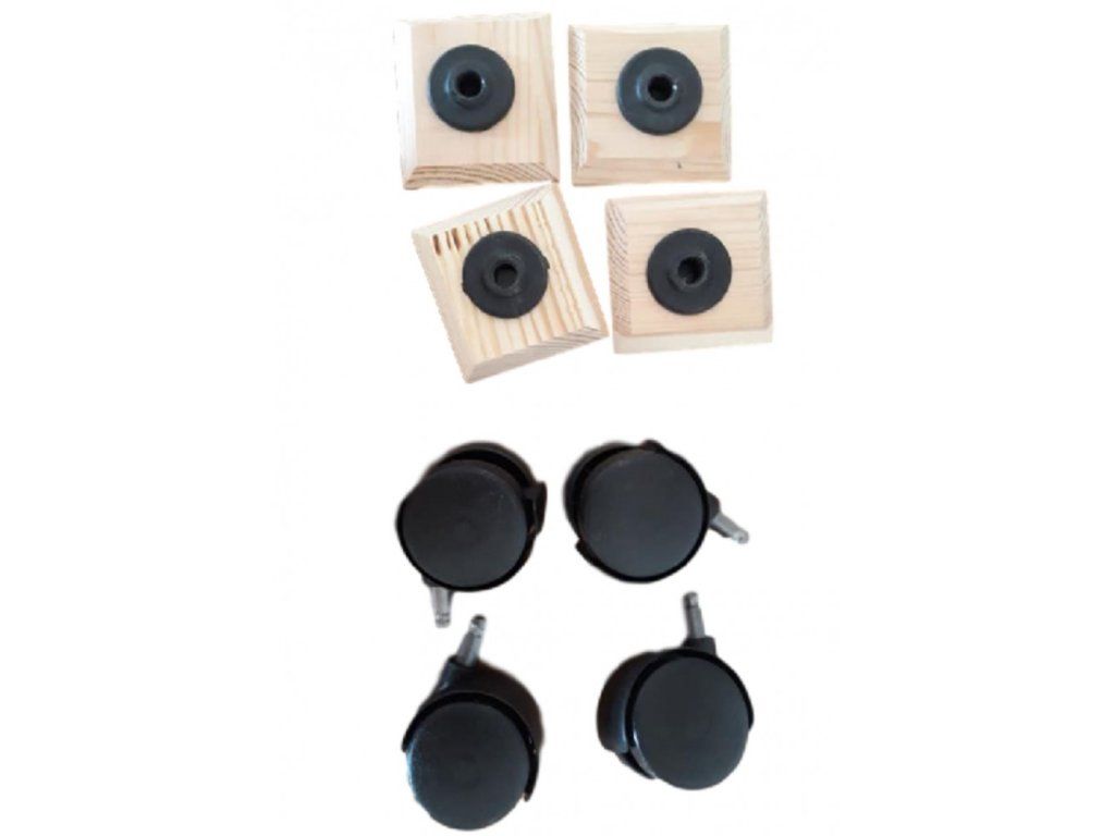 Set od 4 crna kotača koje možete lako pričvrstiti na svaki sanduk ili kutiju.