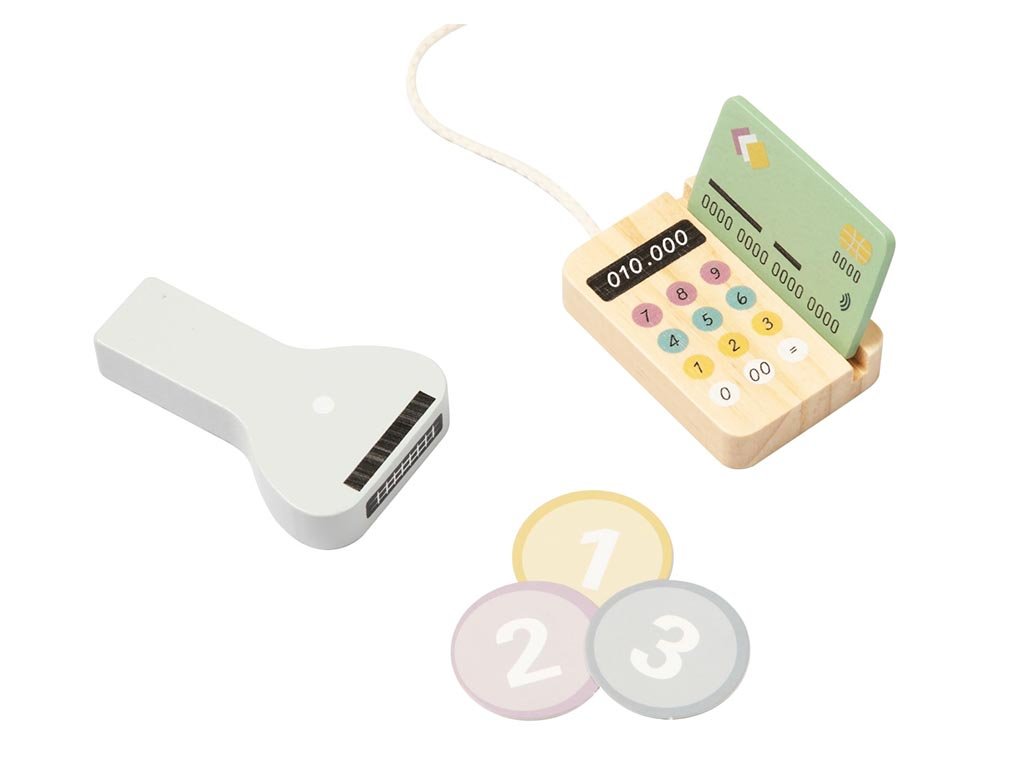 Drveni dizajn s glatkim rubovima i sigurnim bojama osigurava dug vijek trajanja i sigurnost tijekom igre. Blagajna je idealna za male trgovce koji žele razvijati svoje vještine na zabavan način. Igračka je prikladna za djecu od 3 godine.