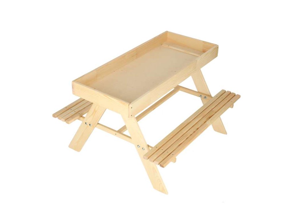 Višenamjenski drveni vrtni set za djecu, koji se može koristiti kao stol, ploča za crtanje i pješčanik. Puno zabave u jednom. Djeca će biti oduševljena.