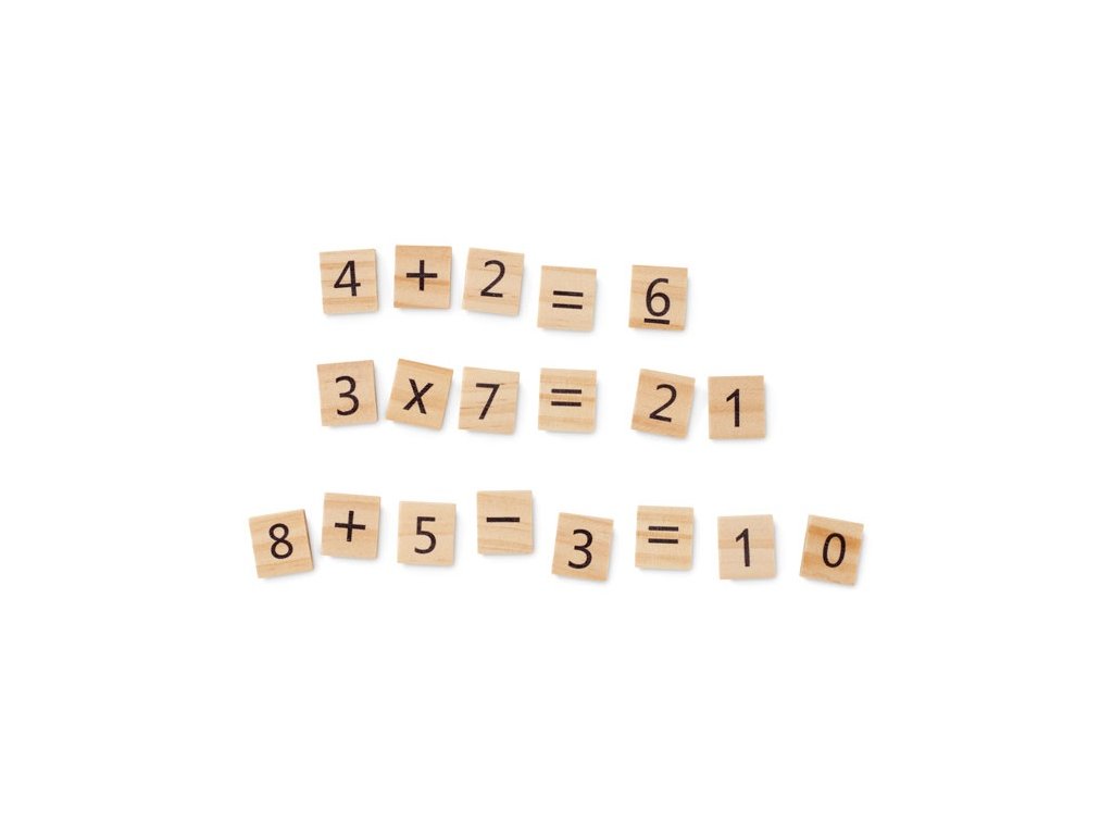 Drvena edukativna igra s brojevima odlična je pomoć u učenju matematike. Djeca na zabavan način uče pojedinačne brojeve i znakove. Igra se sastoji od 32 komada koji su vrlo udobni za dlan.