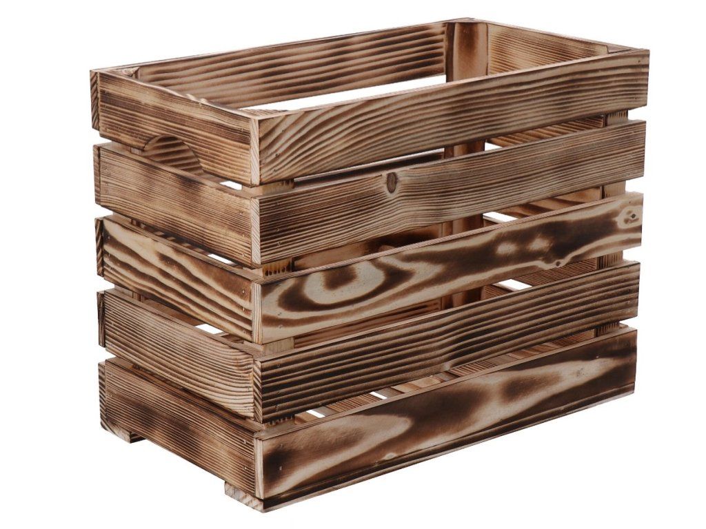 Drvena gajba od paljenog drveta 40 x 22 x 30 cm