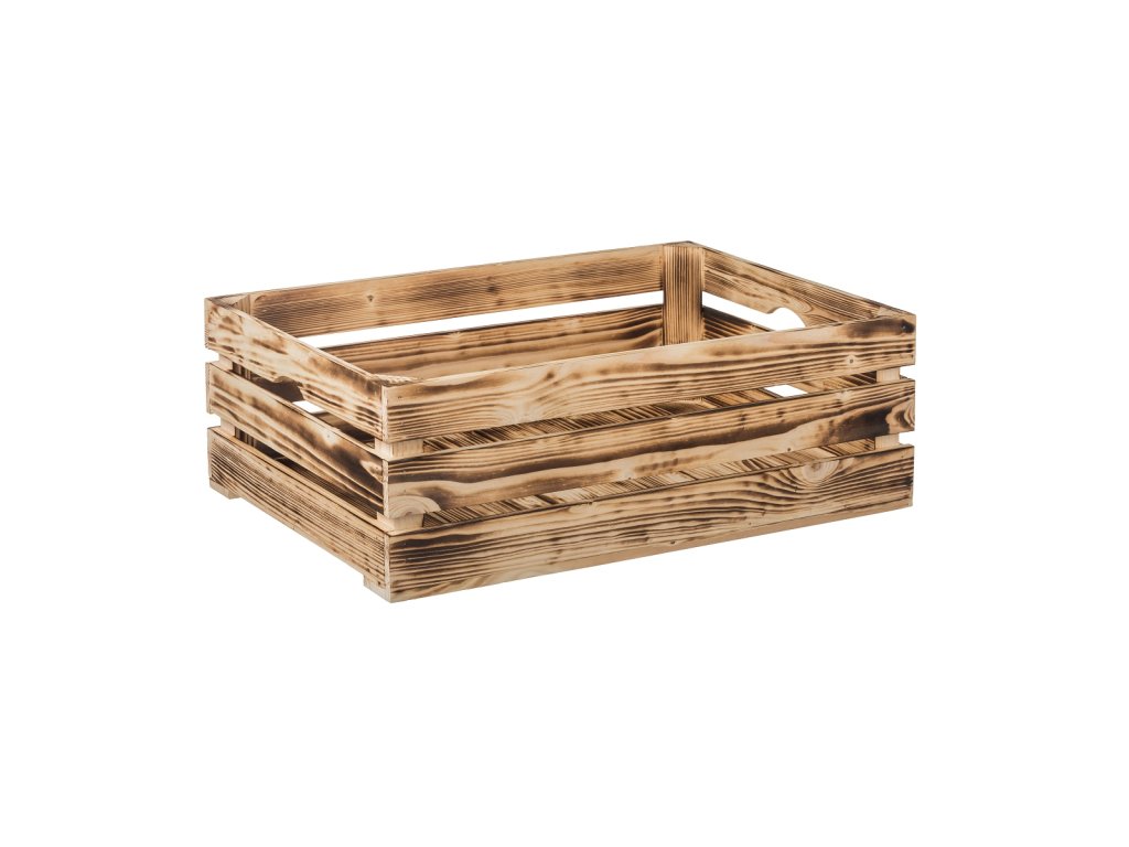 Drvena gajba od paljenog drveta 60 x 39 x 20 cm