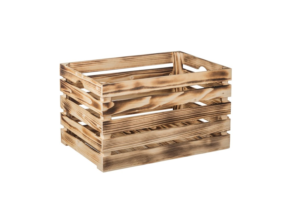 Drvena gajba od paljenog drveta 60 x 39 x 35 cm