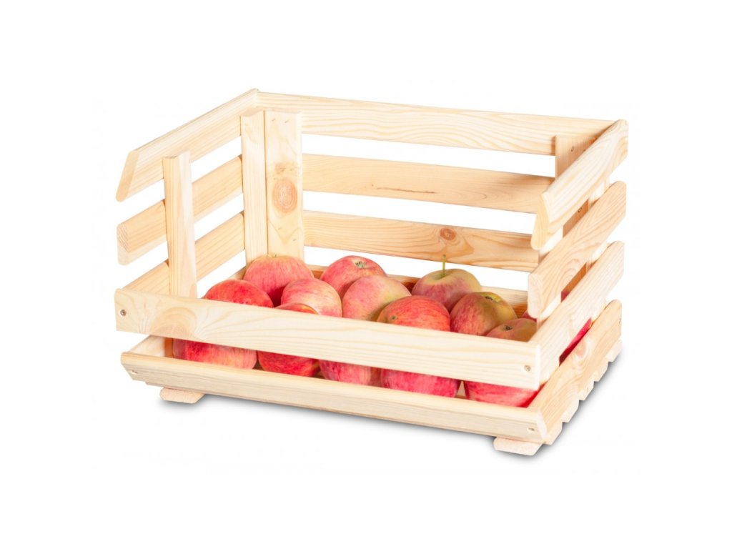 Sanduk od prirodnog borovine idealan je za skladištenje voća i povrća, ali možete ga koristiti i za bilo što drugo. Ako trebate prostor za alat u radionici ili dokumente u uredu. Budući da sanduci savršeno pristaju jedan na drugi, također možete uštedjeti puno prostora kada ih slažete.