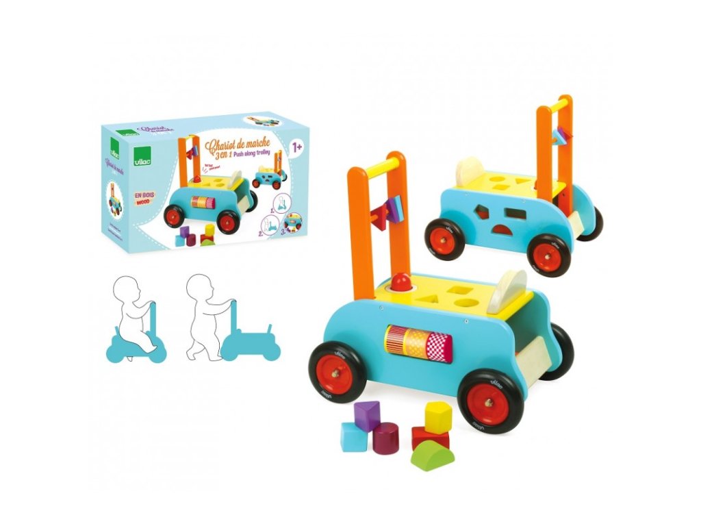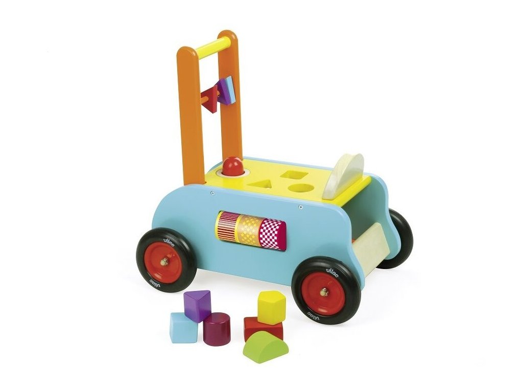 Drvena hodalica doista je multifunkcionalna. Možete sjesti na njega i poskakivati ga ili ga gurati ispred sebe. U početku ova kolica pomažu djeci da bolje koordiniraju hodanje. Hodalica razvija motoriku djece, njihova osjetila i uči ih prepoznavanju boja i oblika.