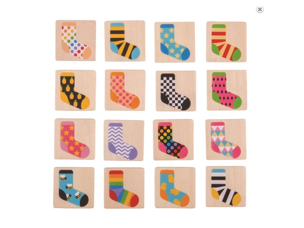 Drveni pexeso nudi mnoge sate zabave. Svaki par čarapa je drugačiji.