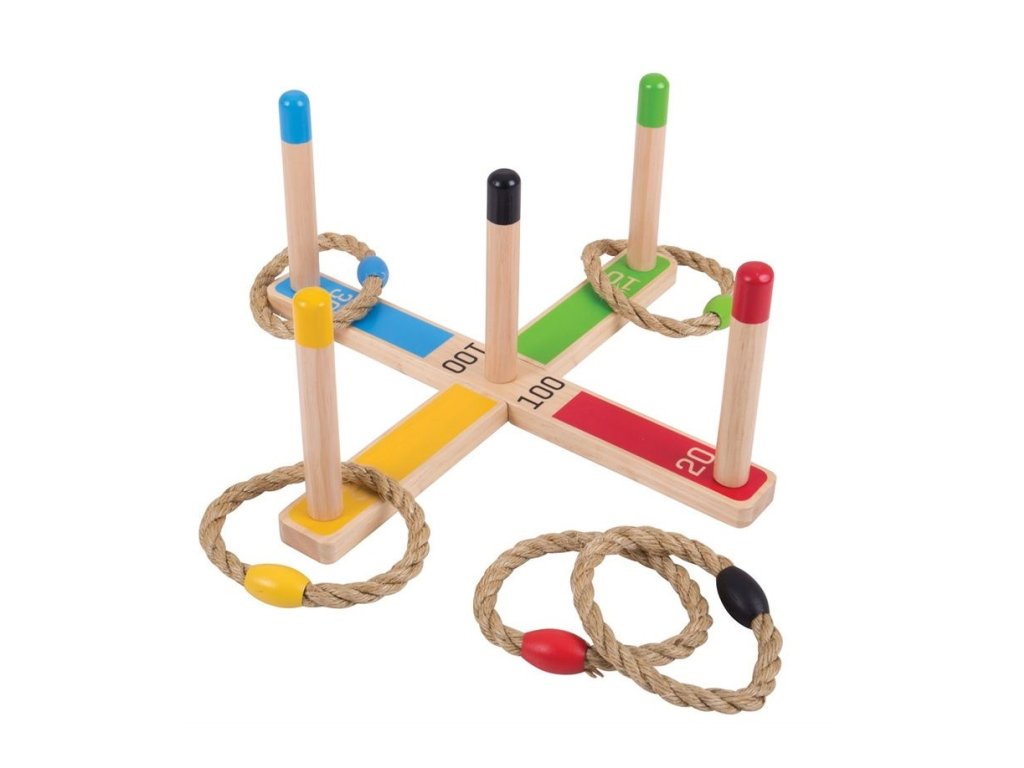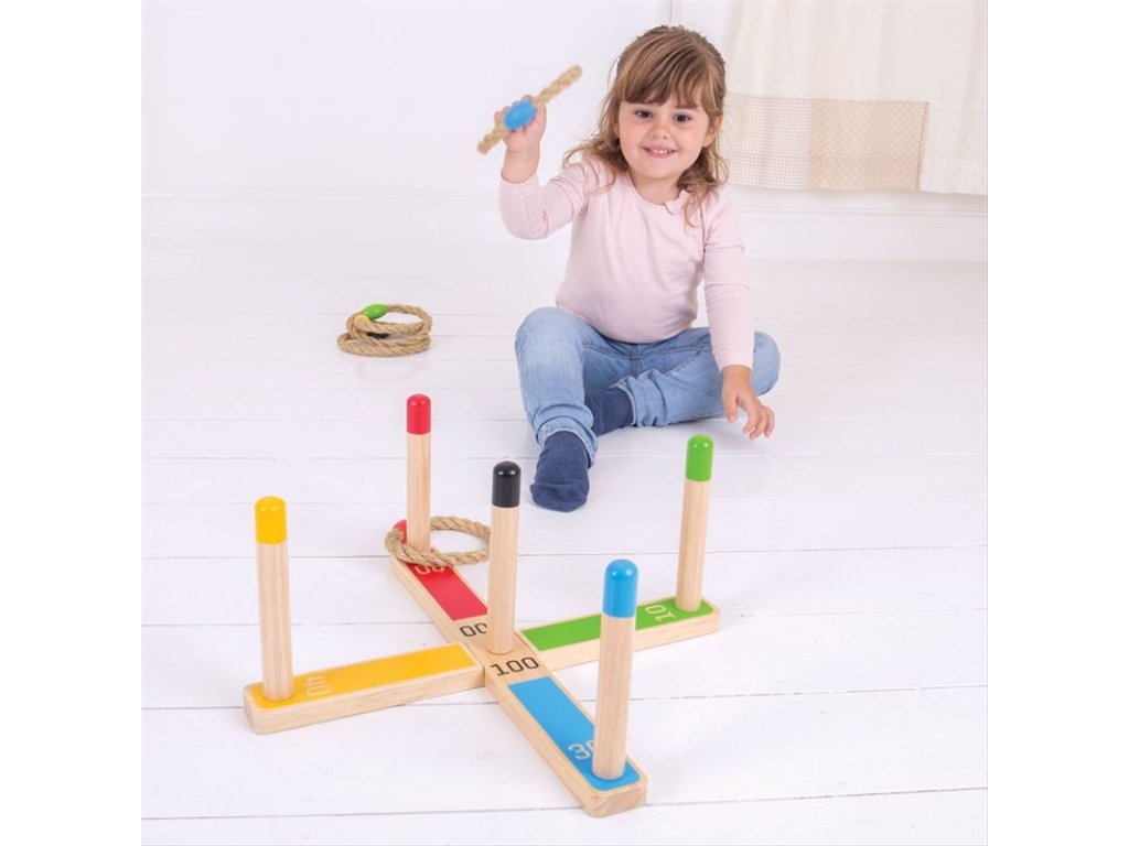 Cilj je štapovima baciti 5 kolutića od pletenog užeta na drveni križ i osvojiti što više bodova.