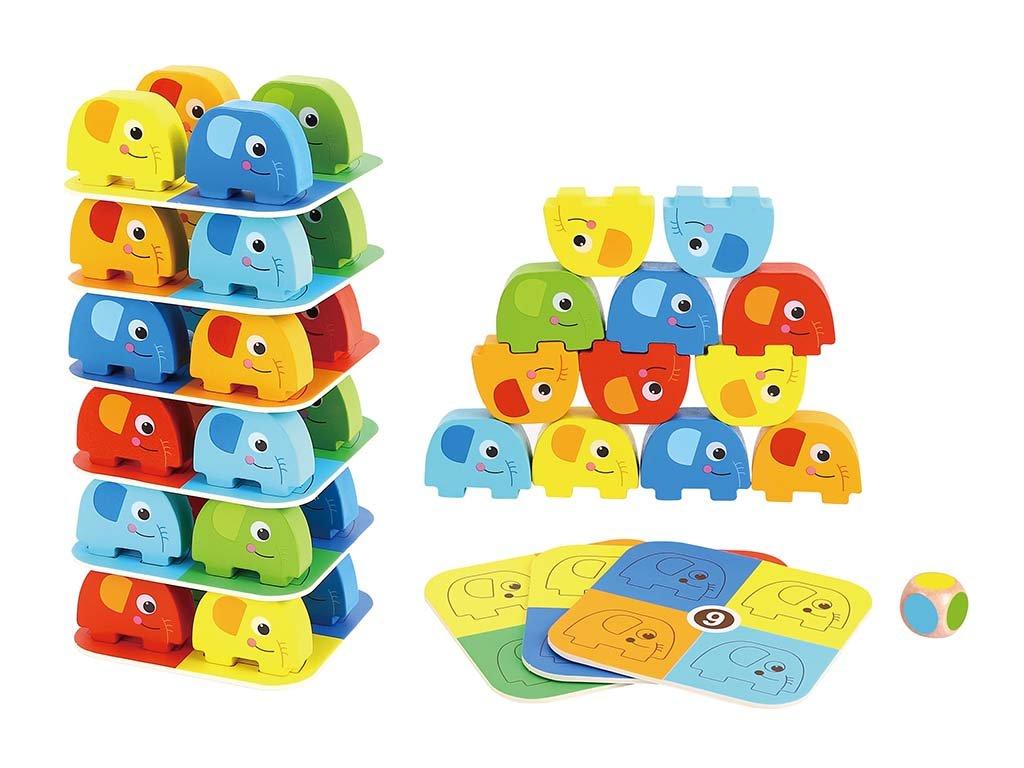 Životinjski toranj za ravnotežu je zabavna i edukativna igračka koja djecu uči strpljenju, koncentraciji i finoj motorici. Zadatak je sastaviti šarene drvene pločice u toranj i postupno postavljati šarene slonove na njih bez da se cijela konstrukcija sruši. Životinjski prijatelji neće samo vježbati dječju spretnost, već i njihovu maštu prilikom izmišljanja vlastitih priča.
