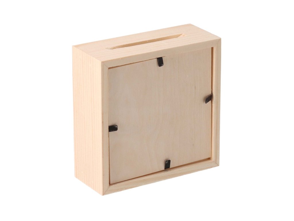 Drvena kasica prasica s okvirom i staklenim poklopcem potaknut će vas da uštedite novac, primjerice, za vjenčanje, putovanje, odmor, kupnju automobila ili što već planirate.