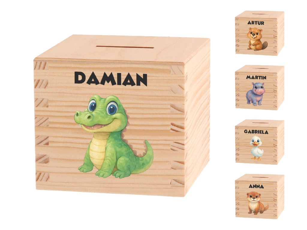 Idealan poklon za svaku priliku! Drvena kasica za djecu s imenom i omiljenom životinjom pomaže djeci naučiti kako upravljati novcem, a ujedno će biti i lijepa dekoracija u njihovoj sobi.