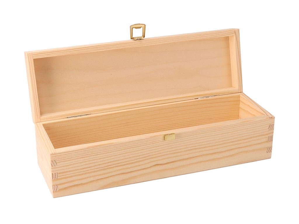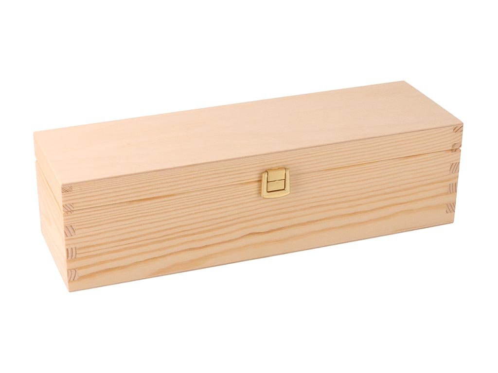 Vrlo dobro izrađena kutija za vino izrađena je od borovine iu nju će savršeno stati boca dobrog vina.
