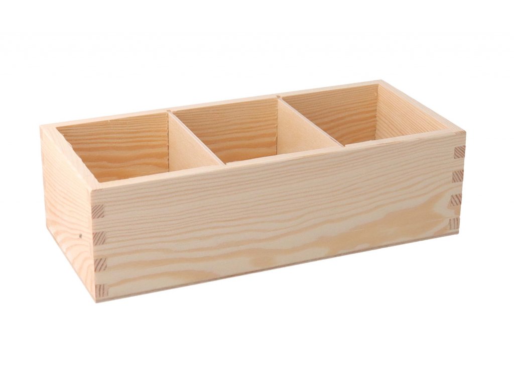 Kutija je podijeljena u tri pretinca, svaki dimenzija 11,5 x 9 cm. Pregrade se lako izvlače.
