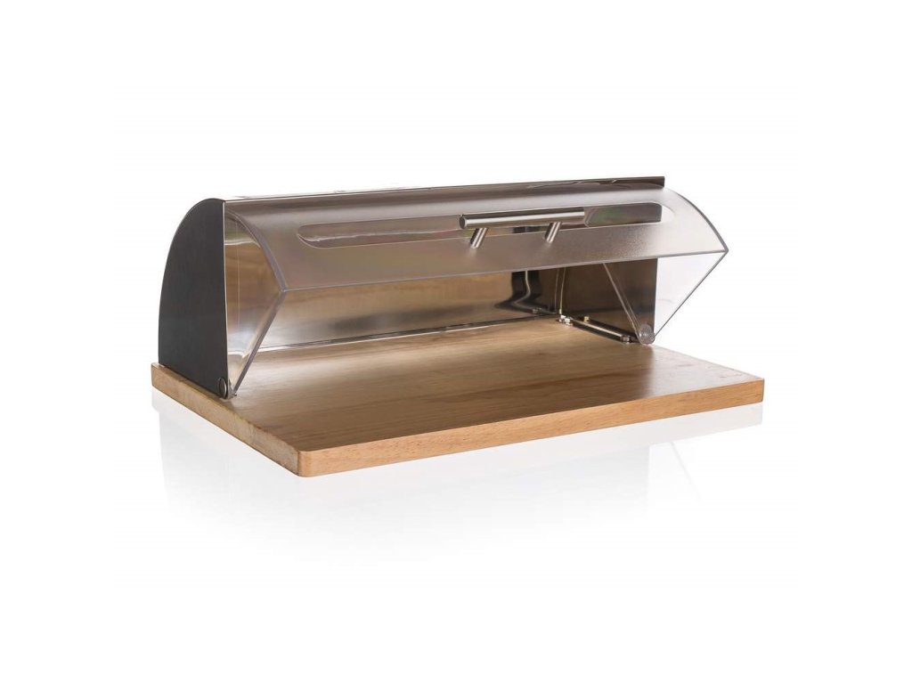 Osnova kutije za kruh izrađena je od drva kaučukovca, a zahvaljujući činjenici da je poklopac kombinacija nehrđajućeg čelika i plastike, već na prvi pogled možete vidjeti kakve vas poslastice čekaju unutra.