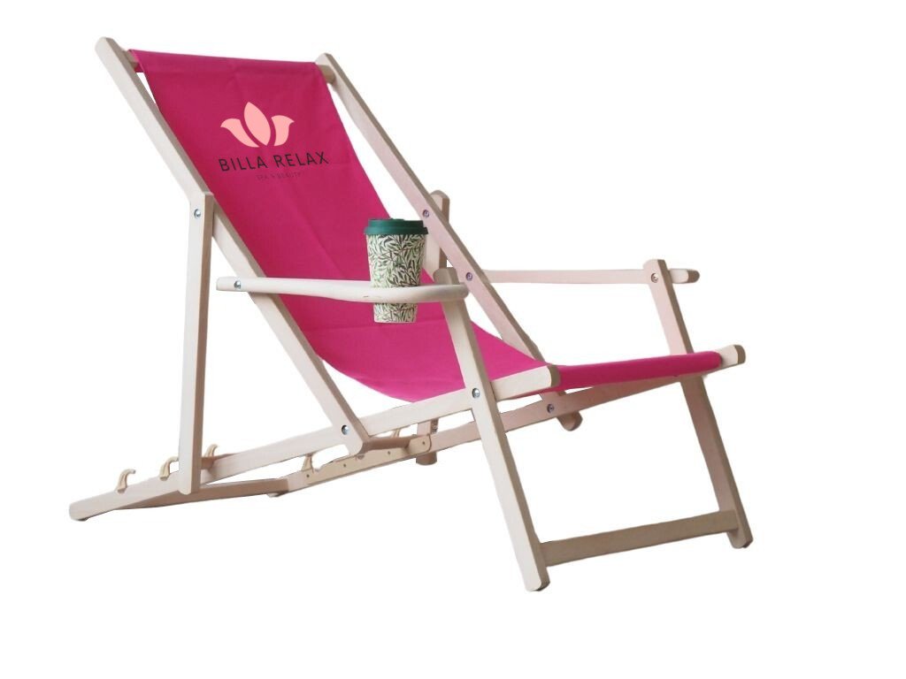 Udobna drvena ležaljka pravi je izbor ako se želite opustiti u vrtu, na terasi, balkonu i uz vodu. Kvalitetna šarena tkanina može se lako ukloniti i oprati. Nudimo tisak u boji već od 10 komada po super cijeni!