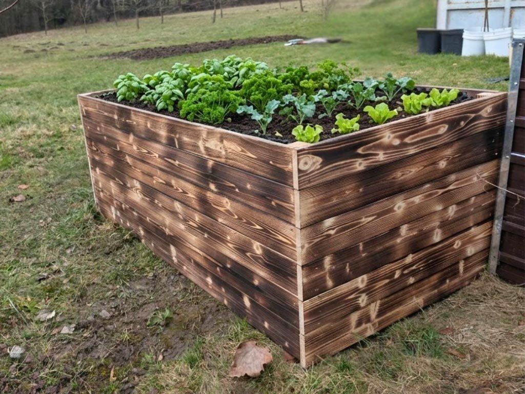 Drvena podignuta gredica 140 x 80 x 60 cm - pougljena