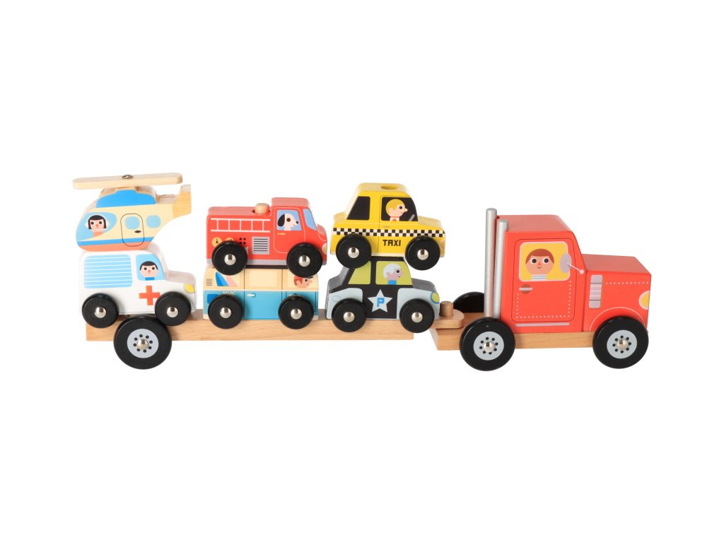 Drvena igračka koja nije samo prikolica s autićima, već i guralica koja uvježbava dječju motoriku i spretnost. Djeca mogu po želji skidati autiće, igrati se s njima i zatim ih vratiti na prikolicu s kojom mogu putovati po vašoj kući.