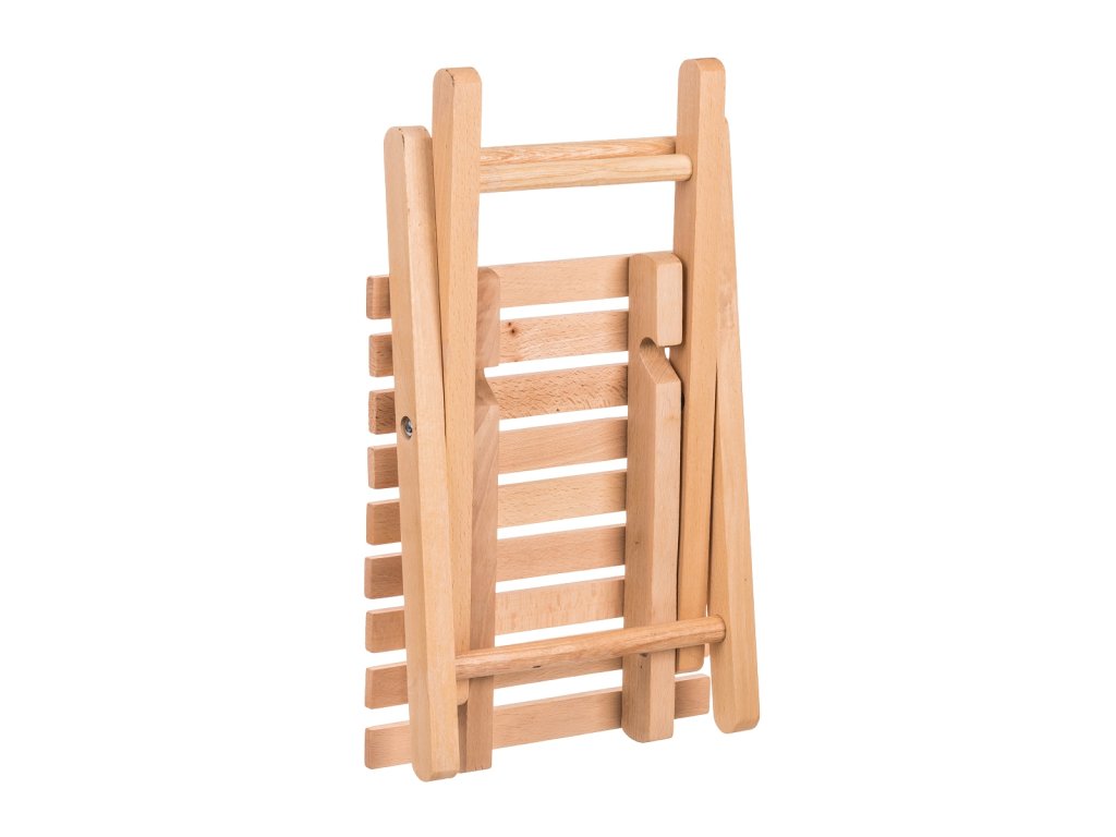 Stolica izrađena od bukovog drveta kompaktnih dimenzija, zahvaljujući kojima može stati u gotovo svaki ormar ili je jednostavno nasloniti u kut sobe.