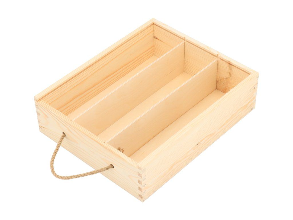Poklon škrinja za 3 boce vina od borovine pogodna je za sve koji žele darivati svoje najdraže sa stilom.