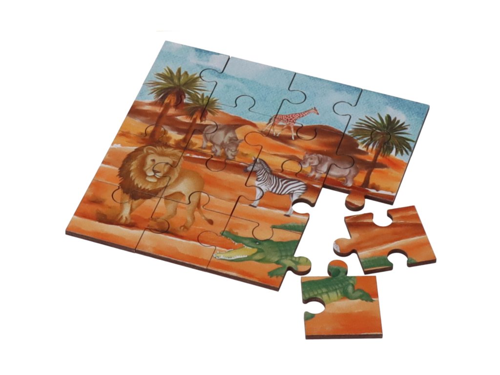 Slagalice sa šarenim slikama afričkih životinja oduševit će djecu svih uzrasta. Slaganje drvenih kocki pomaže razvoju fine motorike, logičkog razmišljanja, ali i strpljenja i suradnje.