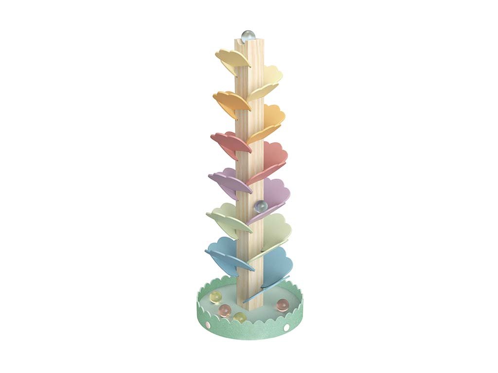 Originalni drveni toranj će na prvi pogled osvojiti djecu svojim šarenim lišćem i čarobnim zvučnim efektom. Samo pustite loptu s vrha i gledajte kako glatko klizi prema dolje, pri čemu svaki list ispušta drugačiji ton.