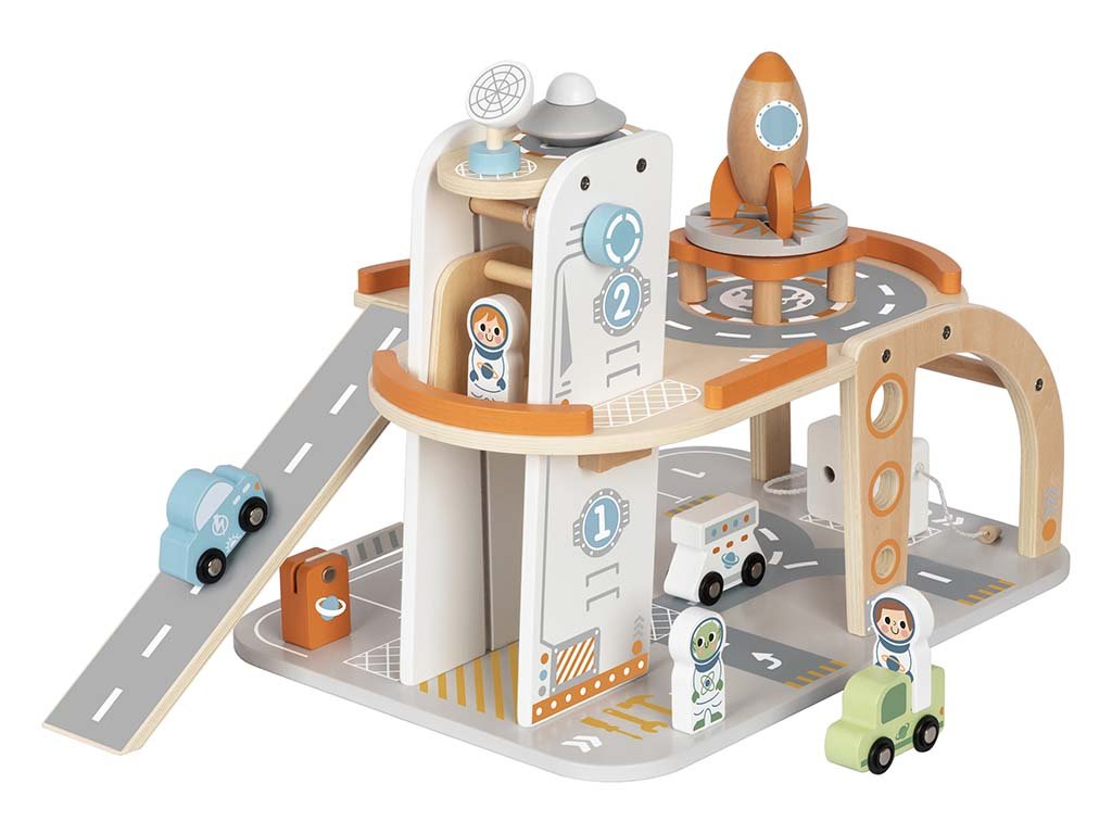Otkrijte drvenu svemirsku postaju s raketom, vozilima i astronautima za beskrajne avanture. Savršen poklon za male istraživače i nezaobilazan dio svake dječje sobe!