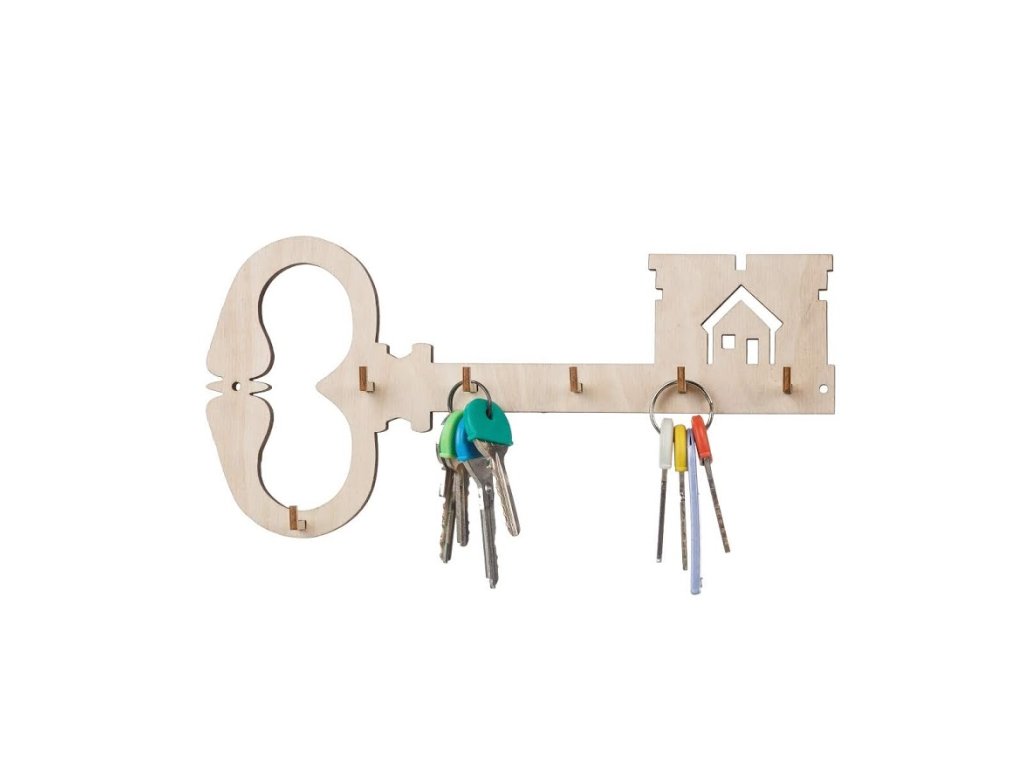 Drvena vješalica za ključeve - ključ sa kućicom