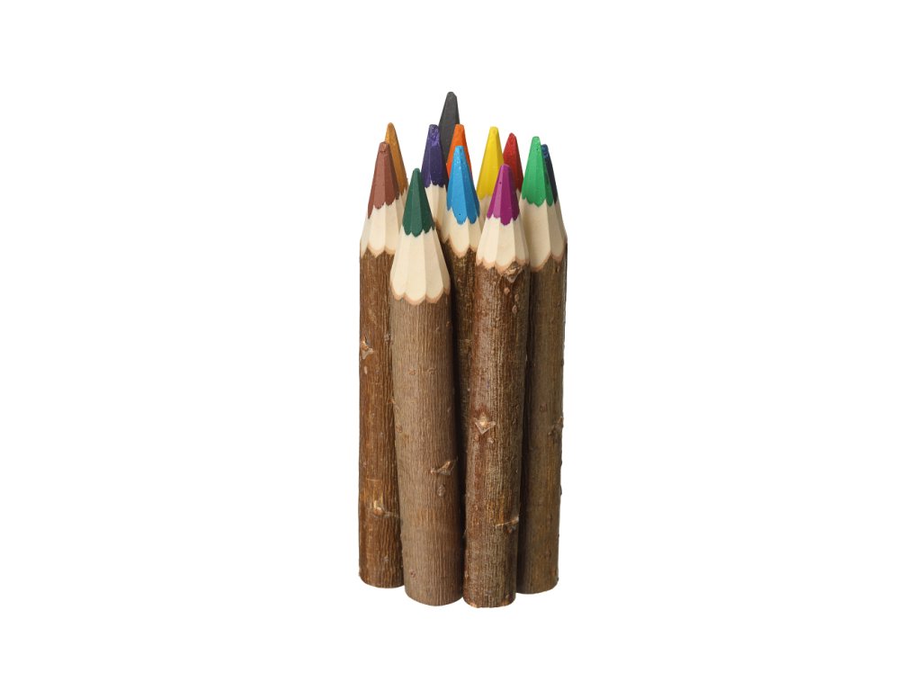 Drvene bojice izrađene od neobrađenog trupca ljeskovog drva, koji je ispunjen bojicom. Dakle, postoji set od 12 drvenih bojica.