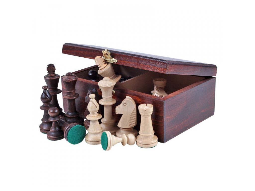 Lijepe drvene šahovske figure upakirane u praktičnu kutiju podijeljenu pregradom. Rezbarene figure izrađene su od grabovog drveta.