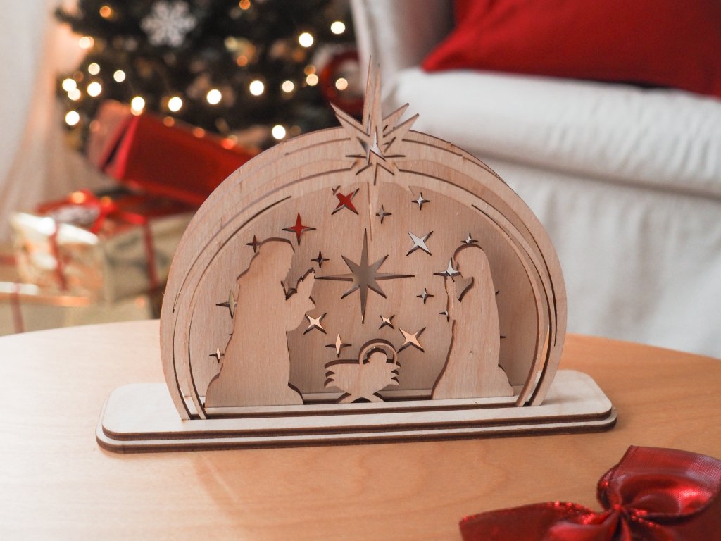 Jaslice od brezove šperploče su ukras za Božić koji ne smije nedostajati u vašem domu. Sitni detalji su precizno izrezani laserom i zahvaljujući čvrstom postolju jaslice za Božić možete postaviti na prozorsku dasku, policu ili komodu.