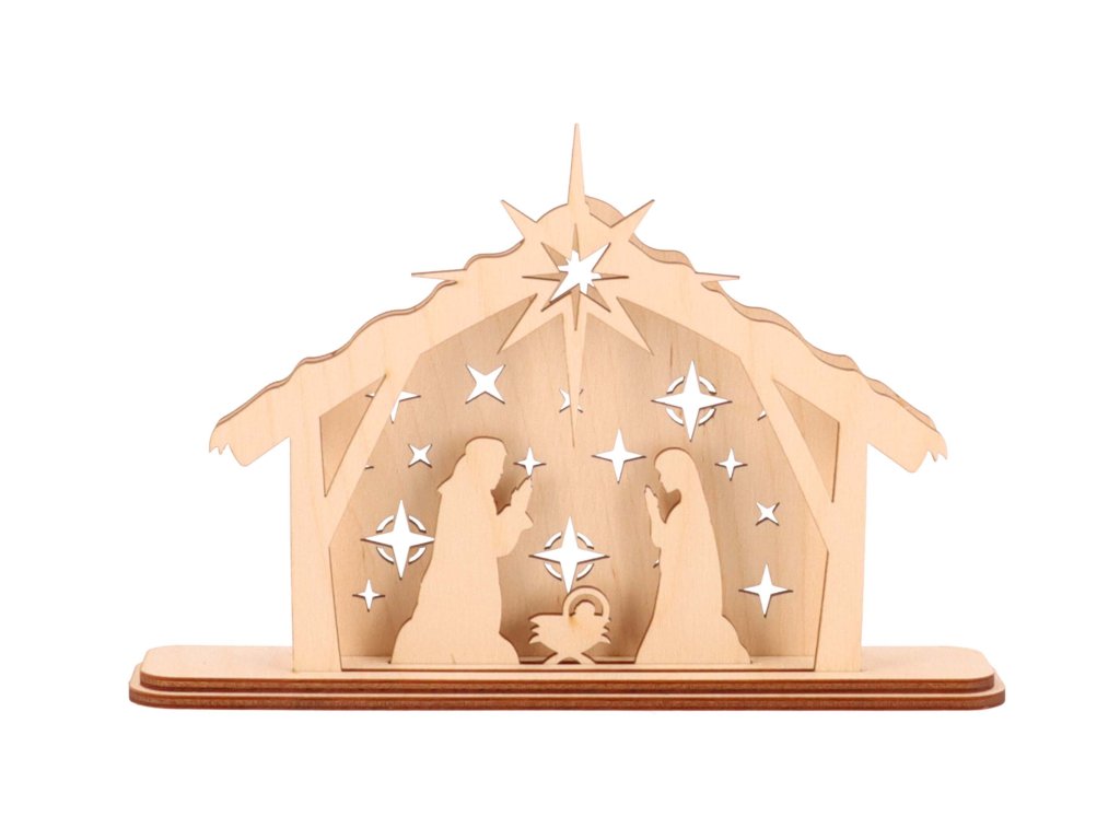 Jaslice od brezove šperploče su ukras za Božić koji ne smije nedostajati u vašem domu. Sitni detalji su precizno izrezani laserom i zahvaljujući čvrstom postolju jaslice za Božić možete postaviti na prozorsku dasku, policu ili komodu.