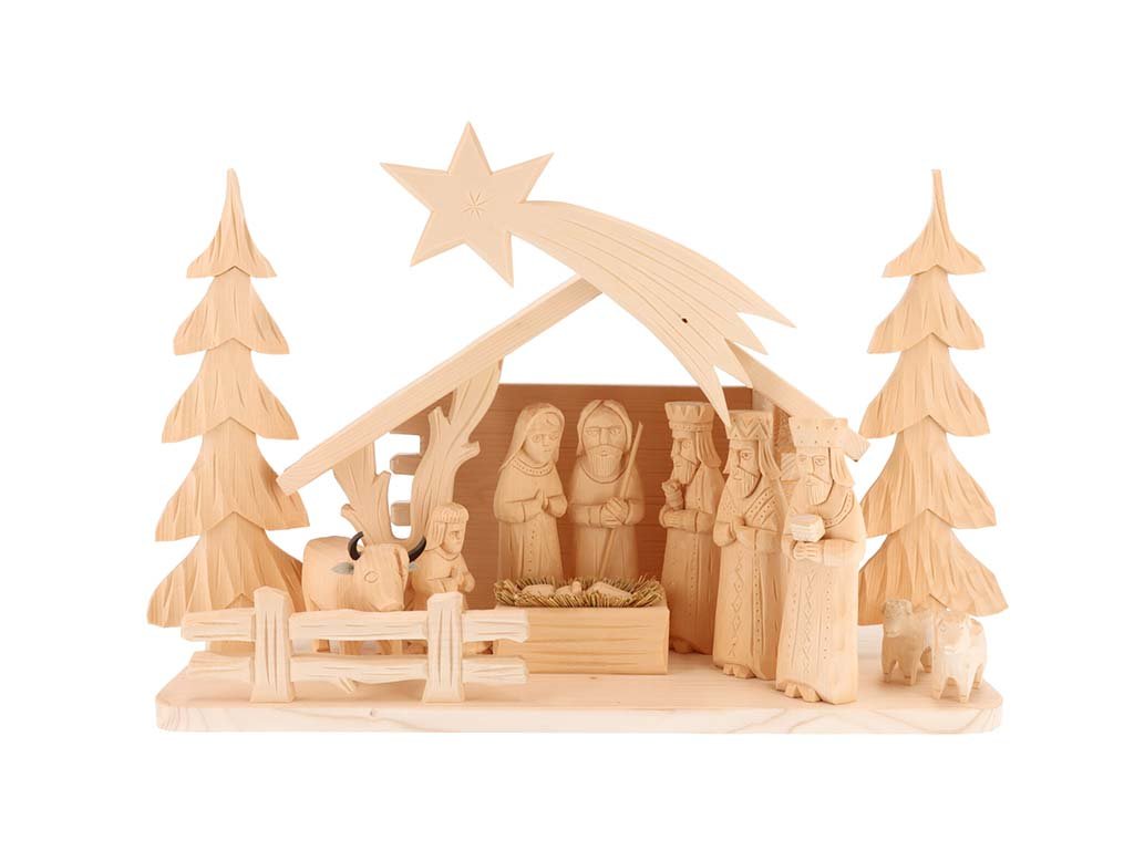 Božićne jaslice izrađene su od masiva smreke i lipe. Figurice su ručno izrađene i ukrašene, pa je stoga svaki komad nepogrešivi original.