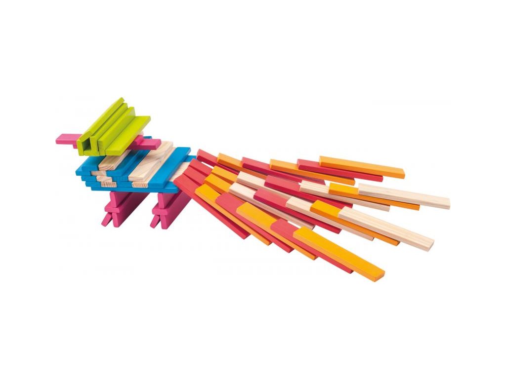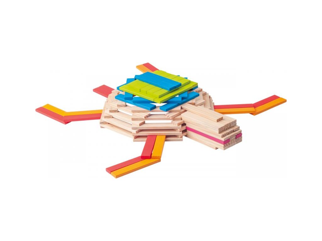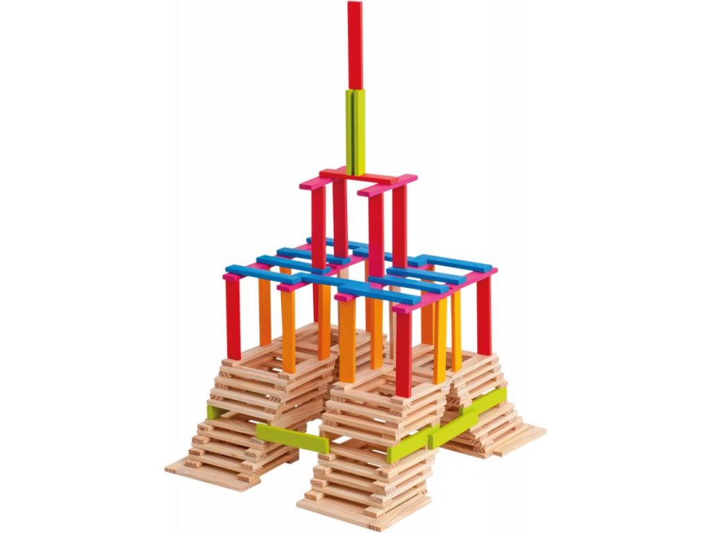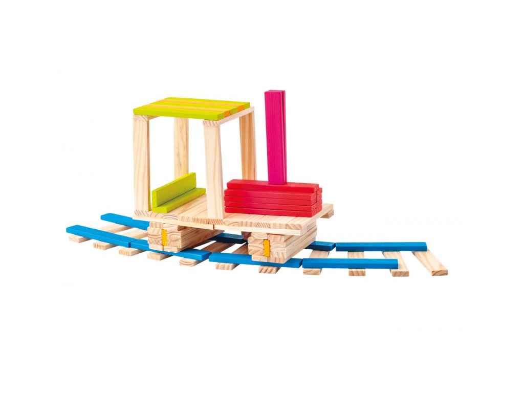 Drvena konstrukcija raste zajedno s djecom. Najmanja djeca mogu ga koristiti za sastavljanje mnogih jednostavnih malih struktura. Starija djeca mogu ga koristiti za slaganje doista impresivnih građevina punih mašte i nevjerojatnih oblika.