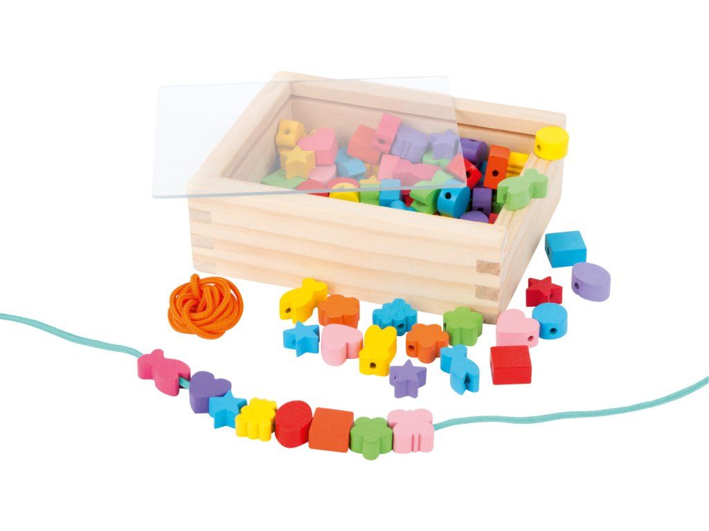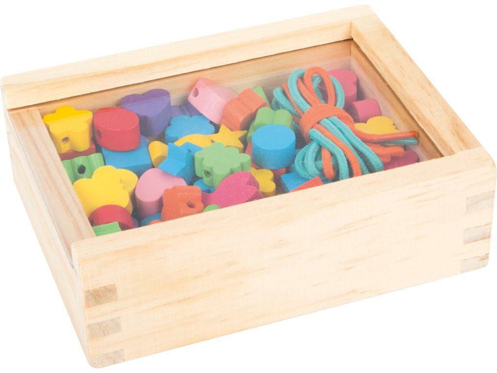 Drvena kutija sa šarenim perlicama i žicama odlična je igračka koja oduševljava i zabavlja djecu, a pritom pomaže koordinaciju dječjih očiju i ruku, razvija finu motoriku i potiče dječju maštu.