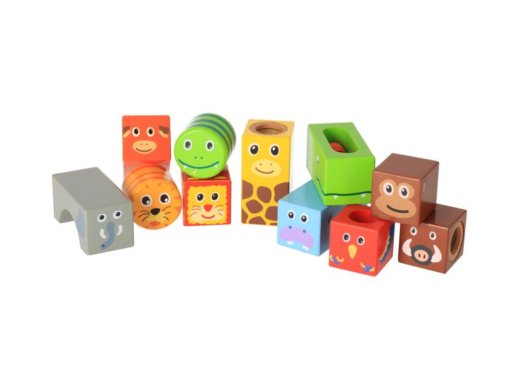 Drvene kocke s motivom životinja iz savane pogodne su i za najmanju djecu. Odlične su za razvijanje motorike, mašte, djeca mogu istraživati zvukove ili oponašati što se događa u zoološkom vrtu.