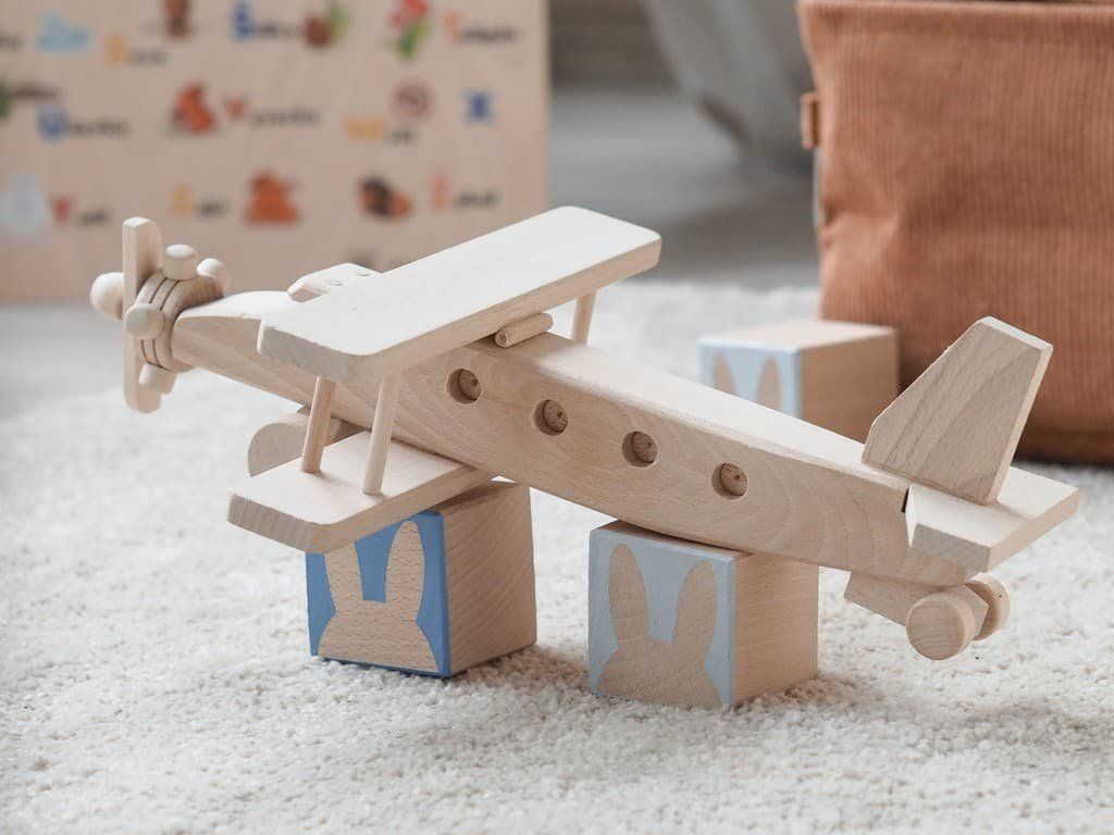 Drveni model ultralakog aviona popularna je igračka za dječake svih uzrasta. Površina je potpuno prirodna, bojama možete kreirati igračku ili originalan ukras po vašoj mašti.