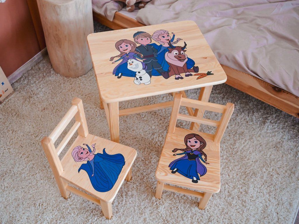 Drveni dječji stolić sa stolicama - Ledeno kraljevstvo