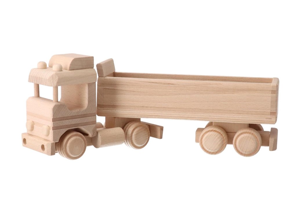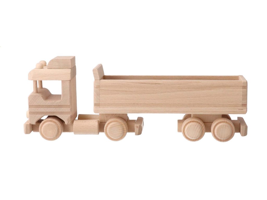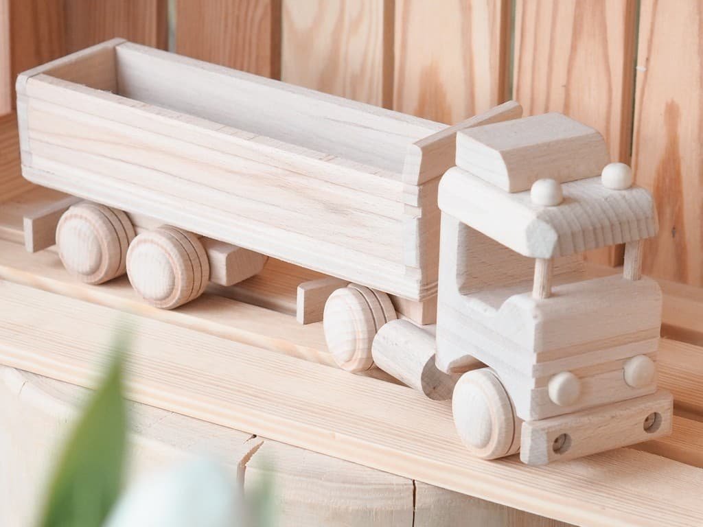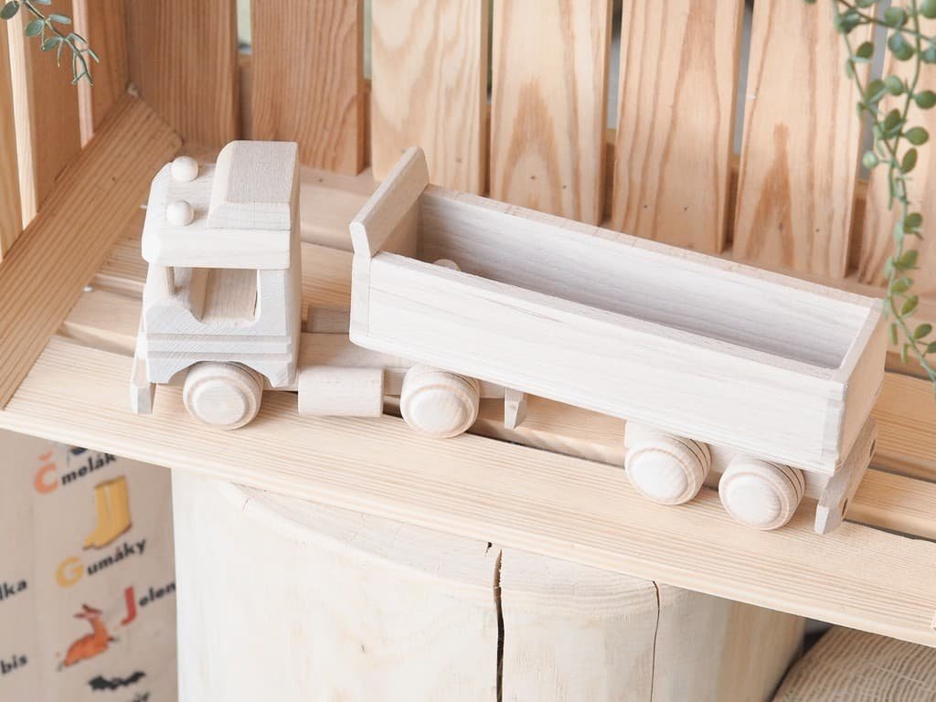 Model drvenog kamiona popularna je igračka za dječake svih uzrasta. Površina je potpuno prirodna, tako da od boja možete kreirati igračku ili originalni ukras prema vlastitoj mašti.