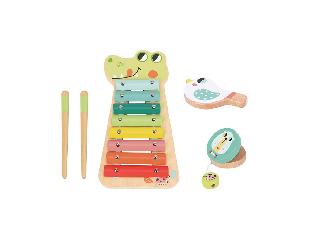 Dječji drveni ksilofon idealan je prvi glazbeni instrument za mlade glazbenike. Zahvaljujući šarenim metalnim jezičcima koji se sviraju drvenim čekićem, djeca se na zabavan način upoznaju sa svijetom tonova. Sviranje ksilofona razvija sluh, finu motoriku i koordinaciju pokreta, a ujedno podržava kreativnost i glazbenu osjetljivost od malih nogu.