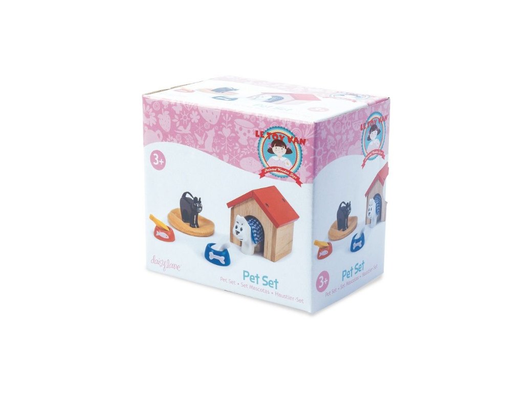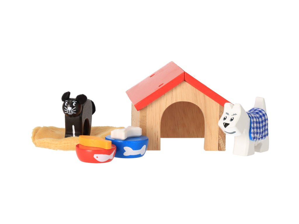 Paket uključuje i kućicu za pse, krevet za mačke, zdjelice za hranjenje, kost i ribicu.
