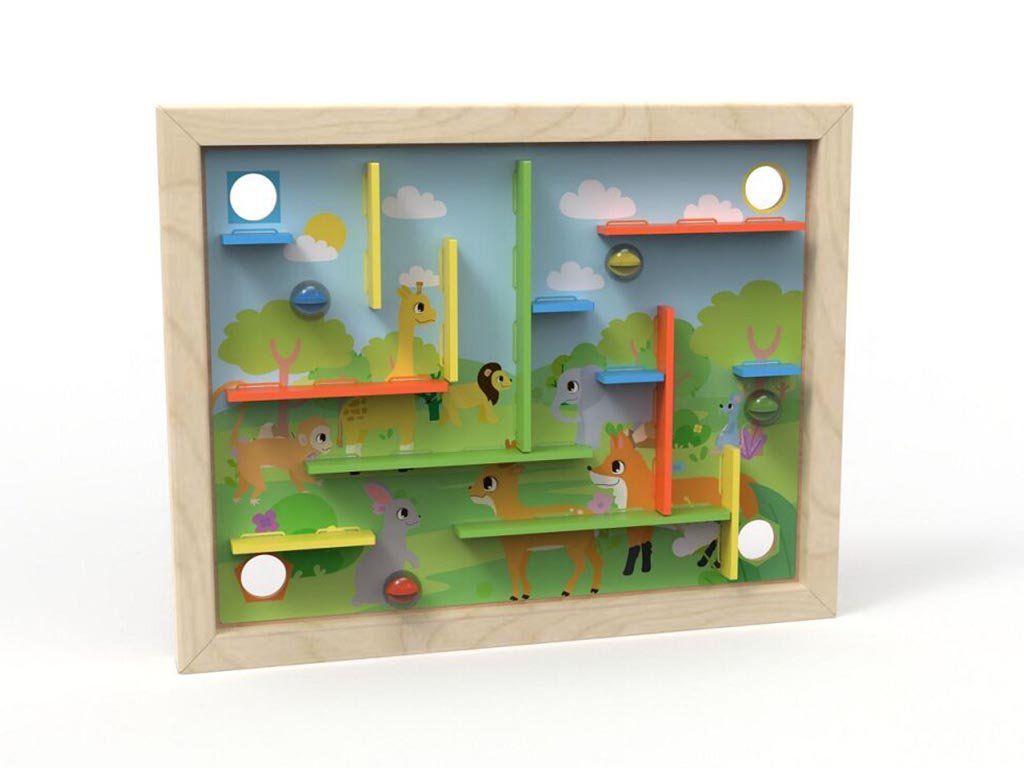 Šareni, kreativni nagibni labirint s veselim životinjama donosi djeci sate zabave i radosnog učenja. Naginjanjem drvene ploče, djeca vode loptu zamršenim stazama, svladavajući prepreke i trenirajući strpljenje, koncentraciju i finu motoriku.